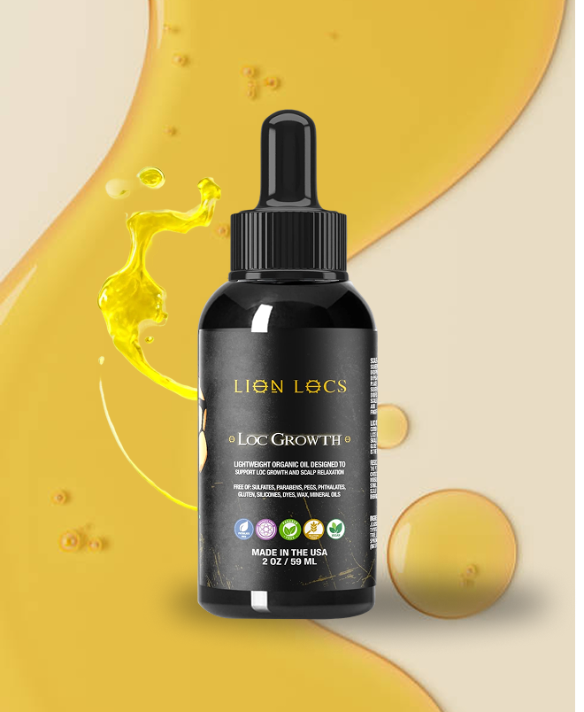 Use Lion Locs Lightweight Loc Growth Oil for long-term growth support, scalp relaxation, dandruff prevention, and styling.