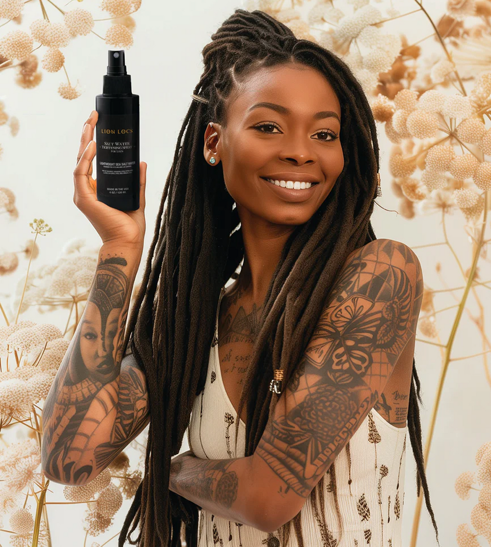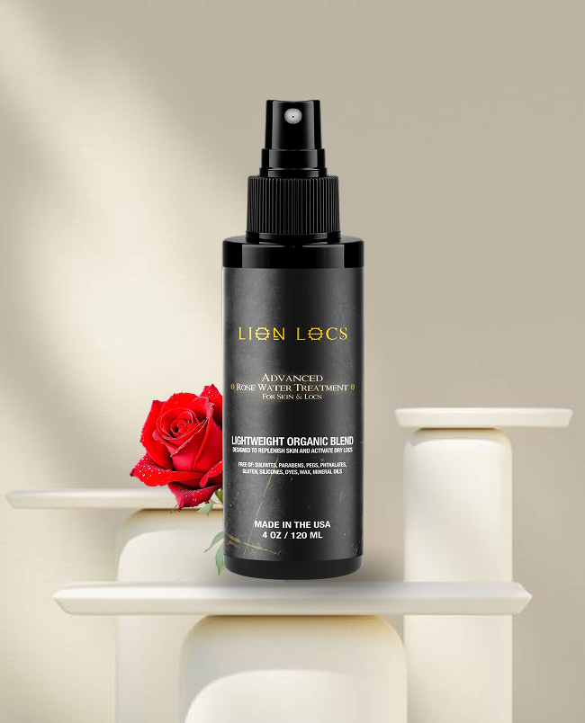 Spray with Lion Locs Advanced Rosewater Treatment for daily hydration, conditioning, and protection.